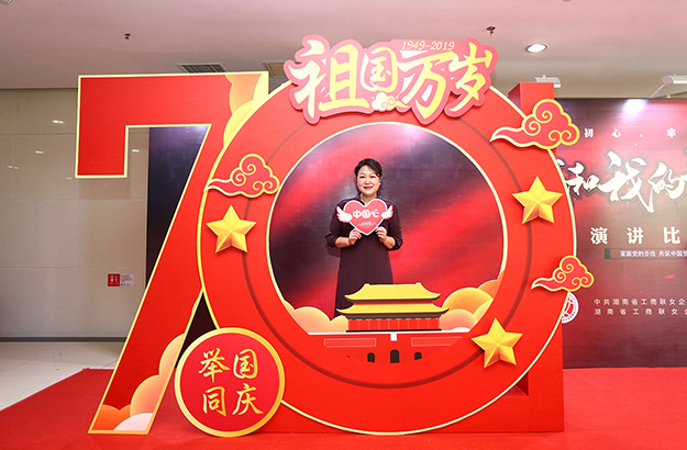 壯麗七十年,奮進新時代。為慶祝中華人民共和國成立 70 周年,2019 年9月28日,由湖南省工商聯(lián)女企業(yè)家商會主辦的《我和我的祖國》主題演講比賽在長沙舉行。中共湖南省委統(tǒng)戰(zhàn)部副部長、省工商聯(lián)黨組書記陳瀟,省工商聯(lián)黨組成員、副主席吳曙光,省工商聯(lián)副巡視員甘露,中共湖南省委統(tǒng)戰(zhàn)部經(jīng)濟處處長楊高飛;省工商聯(lián)會員處處長龍立豪,商會處處長張帆,商協(xié)會黨委副書記劉建平,研究室主任李超玲,青年企業(yè)家商會名譽會長毛鐵;湖南深圳商會執(zhí)行會長封浩建,省非公投資企業(yè)商會會長孫偉,省電子商務(wù)協(xié)會執(zhí)行會長張新亮,省工商聯(lián)女企業(yè)家商會會長吳建平,常務(wù)副會長、綠之韻集團董事總裁勞嘉等領(lǐng)導(dǎo)與嘉賓和來自三湘四水的女企業(yè)家們歡聚一堂,以演講的方式共同歌頌新中國的繁榮富強、蓬勃發(fā)展。