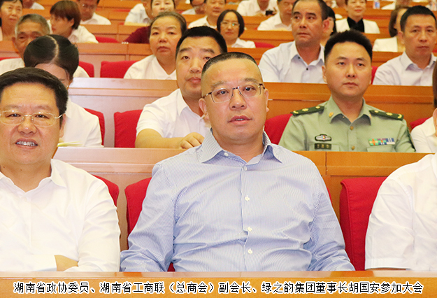 省領導傅奎、黃蘭香、王少峰、胡衡華、張劍飛、張宏森、李殿勛、劉蓮玉、畢毅在主席臺就座。楊正午、徐守盛、劉夫生、王克英、胡彪等全體在職省領導和老同志出席大會。離退休老同志代表,省直有關部門、省屬企業(yè)及在長本科院校主要負責同志,長沙市黨政軍群主要負責同志,各民主黨派省委、省工商聯(lián)負責人和無黨派人士代表,駐長軍事單位軍政主官及官兵代表,部分駐長全國人大代表、政協(xié)委員,杰出人士代表,省會各界群眾代表共1500余人參加大會。作為全國優(yōu)秀中國特色社會主義事業(yè)建設者、湖南省優(yōu)秀非公企業(yè)家代表之一,湖南省政協(xié)委員、湖南省工商聯(lián)(總商會)副會長、綠之韻集團董事長胡國安受邀參加大會。