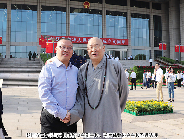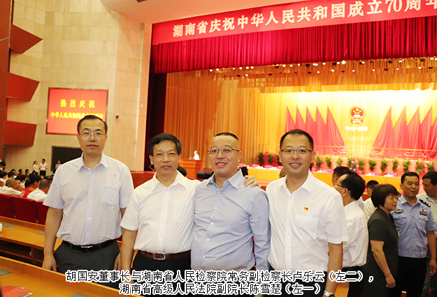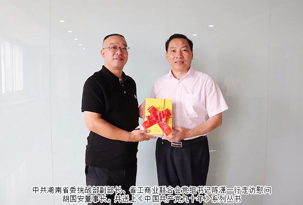 為迎接即將到來的70周年祖國華誕,9月25日下午,中共湖南省委統(tǒng)戰(zhàn)部副部長、省工商業(yè)聯(lián)合會黨組書記陳瀟一行走訪慰問“第四屆全國優(yōu)秀中國特色社會主義事業(yè)建設者”胡國安董事長,為胡國安董事長送來鮮花與《中國共產(chǎn)黨九十年》系列叢書,對胡國安董事長一直以來支持統(tǒng)一戰(zhàn)線工作、為湖南社會經(jīng)濟發(fā)展作貢獻表示感謝并送上節(jié)日的祝福。
