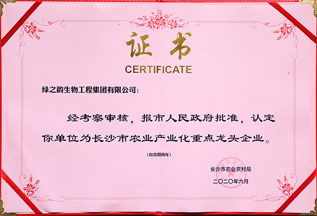 近日,長沙市農(nóng)業(yè)農(nóng)村局下發(fā)《關(guān)于認定長沙市農(nóng)業(yè)產(chǎn)業(yè)化重點龍頭企業(yè)的通知》,經(jīng)考察審核,報長沙市人民政府批準(zhǔn),綠之韻集團等76家企業(yè)被認定為“長沙市農(nóng)業(yè)產(chǎn)業(yè)化重點龍頭企業(yè)”。