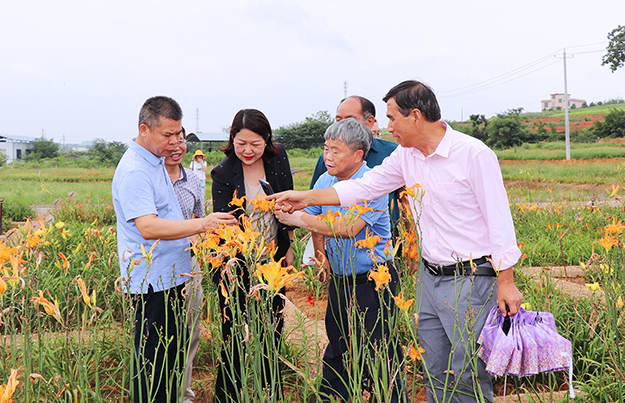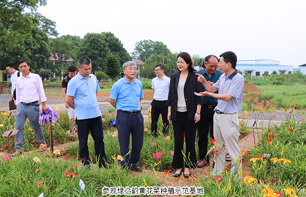 儀式后,祁東縣農(nóng)業(yè)農(nóng)村局黨委書記、局長(zhǎng)彭中華,綠之韻集團(tuán)董事、總裁勞嘉,綠之韻集團(tuán)特聘專家、湖南農(nóng)業(yè)大學(xué)博士生導(dǎo)師曾建國(guó)教授等一行還參觀考察了綠之韻黃花菜種植示范基地。