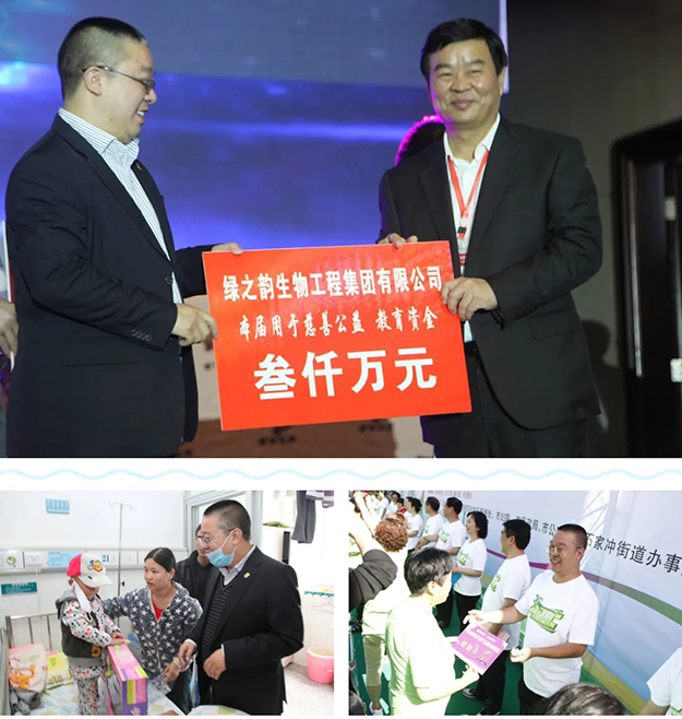 十七年來,綠之韻在胡國安董事長帶領(lǐng)下,在發(fā)展實(shí)業(yè)的同時(shí),積極承擔(dān)社會(huì)責(zé)任,產(chǎn)業(yè)富民、回饋社會(huì),如:在全國各地先后援建了11所希望學(xué)校,陸續(xù)投入1000萬元開展“樹人行動(dòng)”,投入300萬元在全國各地開展“綠韻圓夢(mèng)·書香助學(xué)”活動(dòng),投入300萬元用于全國貧困母親救助行動(dòng),捐贈(zèng)700萬元為城鎮(zhèn)低保婦女提供“兩癌”免費(fèi)檢查服務(wù),向湖南省光彩事業(yè)基金會(huì)捐贈(zèng)3000萬元促進(jìn)“老、少、邊、窮”地區(qū)的經(jīng)濟(jì)發(fā)展和社會(huì)進(jìn)步。