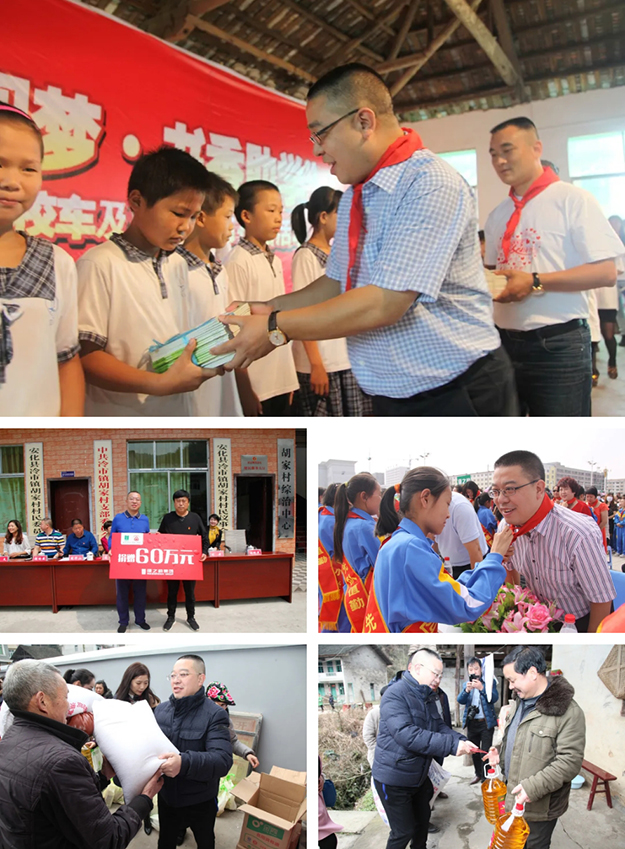 慈心厚德,善舉為民。胡國安董事長始終將雷鋒積極奉獻(xiàn)的精神踐行在個(gè)人修為和企業(yè)發(fā)展之中。截止目前,綠之韻在他的帶領(lǐng)下,已經(jīng)踴躍參與了100多項(xiàng)公益慈善項(xiàng)目,項(xiàng)目涉及希望學(xué)校、賑災(zāi)濟(jì)困、孤殘救助、醫(yī)療衛(wèi)生、修路飲水、社會(huì)養(yǎng)老等多個(gè)領(lǐng)域,公益足跡覆蓋全國13省60多個(gè)區(qū)縣,累計(jì)捐贈(zèng)款物達(dá)7000多萬元,贏得了社會(huì)各界的好評(píng)。胡國安董事長先后被中央統(tǒng)戰(zhàn)部等五部委評(píng)為“全國優(yōu)秀中國特色社會(huì)主義事業(yè)建設(shè)者”、被中華慈善總會(huì)授予“突出貢獻(xiàn)獎(jiǎng)”、被共青團(tuán)中央授予“希望杰出貢獻(xiàn)獎(jiǎng)”,榮獲湖南省 “百名最美扶貧人物”、長沙市首屆“十大同心人物”等榮譽(yù)表彰?!熬珳?zhǔn)扶貧”提出五周年之際,2018年10月16日,綠之韻被全國工商聯(lián)、國務(wù)院扶貧辦評(píng)為全國“萬企幫萬村”精準(zhǔn)扶貧行動(dòng)先進(jìn)民營企業(yè)。