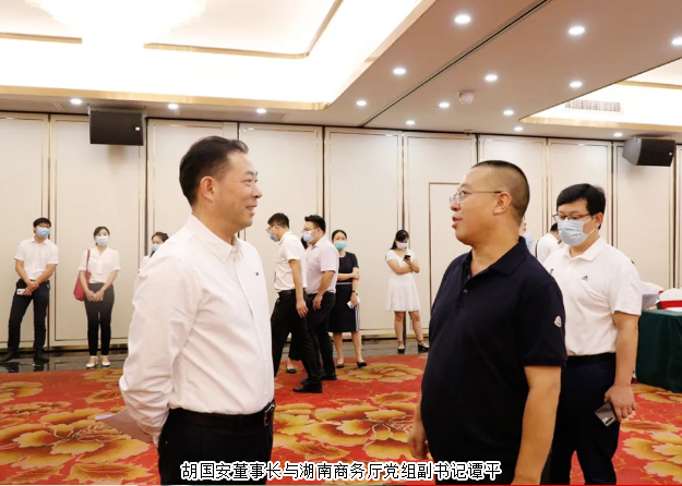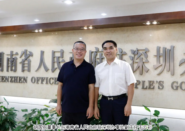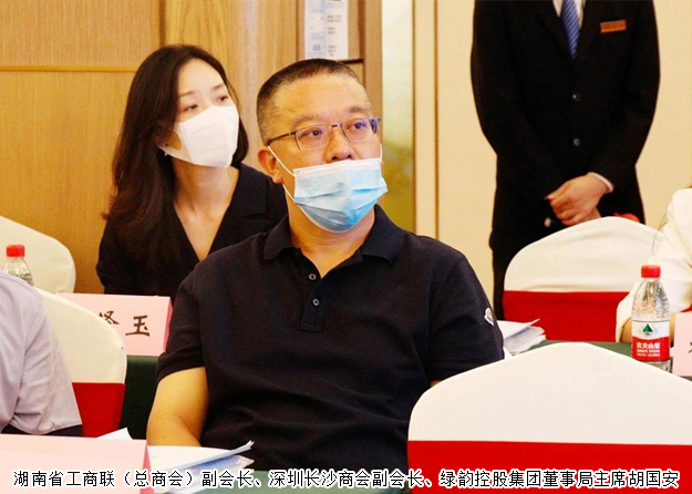 2020年7月30日,由湖南省商務(wù)廳、湖南省政府駐深辦、長(zhǎng)沙市政府駐深辦主辦,長(zhǎng)沙市高新區(qū)、湖南-粵港澳產(chǎn)業(yè)轉(zhuǎn)移綜合服務(wù)中心承辦的“慶祝深圳特區(qū)成立40周年湘深兩地工作座談會(huì)”在深圳召開(kāi)。湖南省政府副秘書(shū)長(zhǎng)陳獻(xiàn)春,原深圳市委常委、警備區(qū)政委、口岸辦主任曹紹業(yè),原深圳市委常委、警備區(qū)政委李建華,深圳市政府發(fā)展研究中心主任吳思康,深圳市大鵬新區(qū)原區(qū)長(zhǎng)何永志,深圳市扶貧協(xié)作和合作交流辦公室副主任劉大平,湖南省人民政府駐深圳辦事處原主任彭發(fā)生、黃道望、廖克勤,湖南省商務(wù)廳黨組副書(shū)記譚平,湖南省人民政府駐深圳辦事處副主任李永東,湖南省人民政府駐深圳辦事處一級(jí)巡視員于云彩,長(zhǎng)沙市政府副市長(zhǎng)朱東鐵,長(zhǎng)沙高新區(qū)黨工委書(shū)記周慶年;金榮集團(tuán)董事長(zhǎng)李文金、證通電子(002197)董事長(zhǎng)曾勝?gòu)?qiáng)、萬(wàn)興科技(300624)董事長(zhǎng)吳太兵、深圳市湖南商會(huì)會(huì)長(zhǎng)謝新康、深圳市長(zhǎng)沙商會(huì)會(huì)長(zhǎng)張躍華等領(lǐng)導(dǎo)嘉賓,中國(guó)平安、騰訊、比亞迪等知名企業(yè)出席會(huì)議。湖南省工商聯(lián)(總商會(huì))副會(huì)長(zhǎng)、深圳長(zhǎng)沙商會(huì)副會(huì)長(zhǎng)、綠韻控股集團(tuán)董事局主席胡國(guó)安出席會(huì)議。