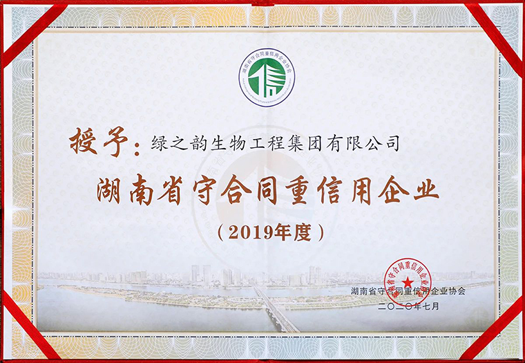 以誠取信,以信立譽。近日,憑借完善的企業(yè)誠信建設(shè)體系與科學(xué)的企業(yè)管理水平,經(jīng)過層層申報、嚴(yán)格評審以及通過湖南日報、信用湖南網(wǎng)、湖南省守合同重信用企業(yè)協(xié)會官網(wǎng)等面向社會公示,綠之韻集團(tuán)再次成功獲評2019年度湖南省“守合同重信用”企業(yè)榮譽稱號。