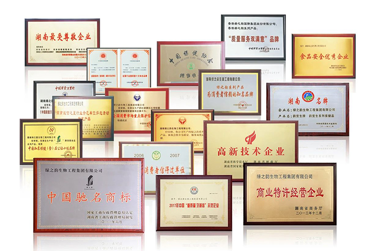 綠之韻始終堅持“以產(chǎn)品為導(dǎo)向”的發(fā)展理念,所推出的產(chǎn)品都緊緊圍繞綠色、天然、健康和養(yǎng)生理念,以產(chǎn)學(xué)研結(jié)合為模式先后與南京大學(xué)、湖南農(nóng)業(yè)大學(xué)、湖南中醫(yī)藥研究院、湖南中醫(yī)藥大學(xué)等多所高等院校及科研機構(gòu)達(dá)成戰(zhàn)略合作,形成了一批以權(quán)威專家教授為核心的產(chǎn)品科研隊伍,具有較強的創(chuàng)新研發(fā)能力。公司系列產(chǎn)品先后通過多項國際權(quán)威認(rèn)證:保健食品GMP認(rèn)證、ISO14001:2015環(huán)境管理體系、ISO9001:2015質(zhì)量管理體系、HACCP食品安全管理體系認(rèn)證。公司先后被授予“國家高新技術(shù)企業(yè)”“湖南省著名商標(biāo)”“湖南名牌”等榮譽。