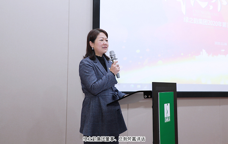 隨后,綠之韻集團(tuán)董事、總裁勞嘉講話。她表示,今年是綠之韻成立十八周年,能夠一路走下來(lái),并取得各項(xiàng)成績(jī),得益于這些五年、十年獎(jiǎng)項(xiàng)獲得者的相信、堅(jiān)持和奉獻(xiàn),得益于在座各位高管和員工的不懈拼搏和辛勤付出。她從重塑崗位和職業(yè)價(jià)值、增強(qiáng)工作有效性、提升解決問(wèn)題能力、提振未來(lái)發(fā)展信心等四個(gè)方面娓娓道來(lái),語(yǔ)重心長(zhǎng)。她強(qiáng)調(diào),綠之韻可以給到每一位員工發(fā)展的舞臺(tái),只要我們沉下心來(lái)學(xué)習(xí),不斷創(chuàng)新工作模式,不斷提高每一個(gè)人解決實(shí)際問(wèn)題的能力,當(dāng)我們足夠優(yōu)秀,我們就能在這里實(shí)現(xiàn)每一個(gè)人的自身價(jià)值。這次疫情雖然對(duì)我們的企業(yè)有一定的影響,但是從國(guó)家層面來(lái)看,隨著《“健康中國(guó)2030”規(guī)劃綱要》的發(fā)布,當(dāng)前“國(guó)民健康”的重視程度前所未有,給我們繼續(xù)投身大健康產(chǎn)業(yè)一劑“強(qiáng)心劑”。從公司層面來(lái)看,目前,公司各個(gè)市場(chǎng)板塊在調(diào)整和融合,向著好的方向發(fā)展?!拔鹜蛱斓目嚯y輝煌,無(wú)愧今天的使命擔(dān)當(dāng),不負(fù)明天的偉大夢(mèng)想?!焙笠咔闀r(shí)代,明年或許會(huì)更艱難,但大家要對(duì)企業(yè)未來(lái)的發(fā)展充滿信心。希望可以看到更多的員工走上公司五年、十年的榮耀舞臺(tái),肩負(fù)使命、創(chuàng)造輝煌,不負(fù)青春、不負(fù)遇見(jiàn)、不負(fù)夢(mèng)想。