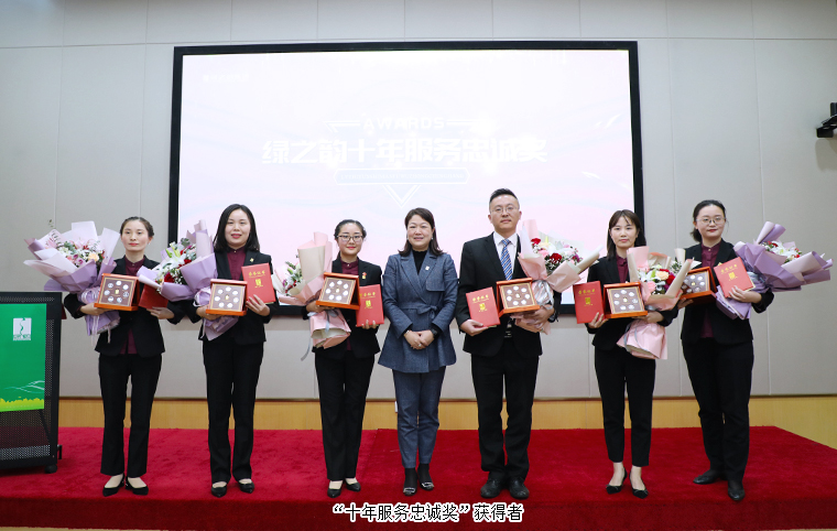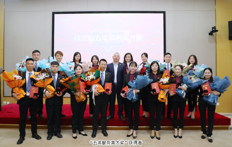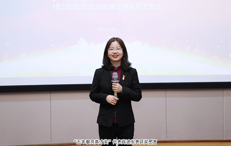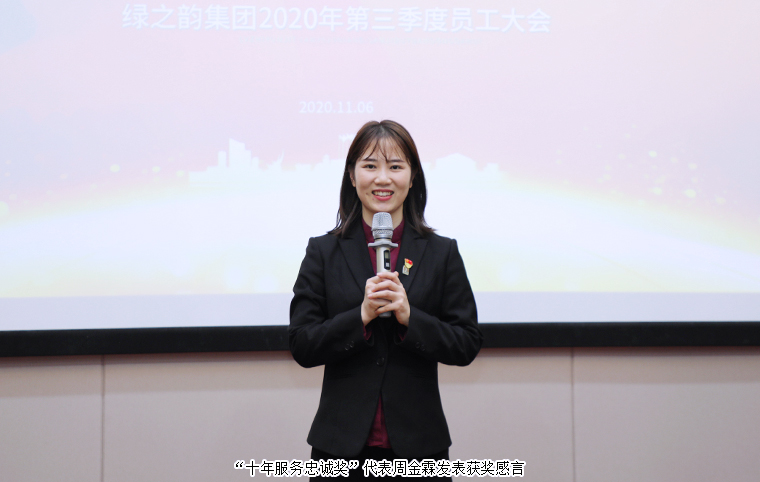 11月6日,綠之韻集團(tuán)2020年第三季度員工大會(huì)暨五年服務(wù)英才獎(jiǎng)、十年服務(wù)忠誠(chéng)獎(jiǎng)?lì)C發(fā)儀式成功舉行。綠之韻集團(tuán)董事長(zhǎng)胡國(guó)安、董事總裁勞嘉攜集團(tuán)高管及全體員工參加會(huì)議。