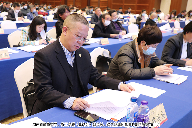 2021年1月21日,湖南省工商聯(lián)(總商會)十二屆四次常委會議、十二屆四次執(zhí)委會議在長沙成功召開。湖南省政協(xié)副主席、省工商聯(lián)主席張健,中共湖南省委統(tǒng)戰(zhàn)部副部長鄧煥生,中共湖南省委統(tǒng)戰(zhàn)部副部長、省工商聯(lián)黨組書記陳瀟,湖南省工商聯(lián)副主席李曦、吳曙光、楊廣林、漆平波和秘書長祝擁軍等領(lǐng)導(dǎo)出席會議。湖南省政協(xié)委員、湖南省工商聯(lián)(總商會)副會長、綠之韻集團董事長胡國安以及全體常執(zhí)委及相關(guān)人員參加會議。中共湖南省委統(tǒng)戰(zhàn)部副部長、省工商聯(lián)黨組書記陳瀟主持會議。