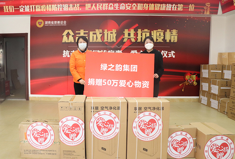 2020年1月27日,綠之韻公益基金會首批通過湖南省慈善總會向湖北省武漢市等疫情嚴(yán)重地區(qū)緊急捐贈現(xiàn)金20萬元。1月29日,綠之韻通過上海慈善基金會向湖北武漢等疫情嚴(yán)重地區(qū)捐贈現(xiàn)金30萬元。