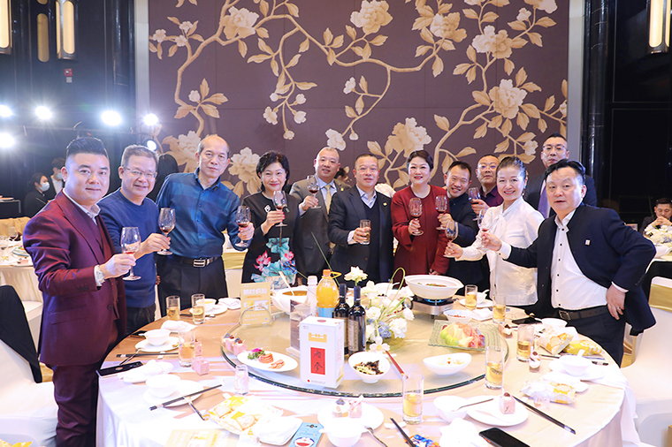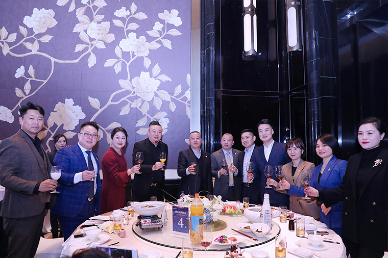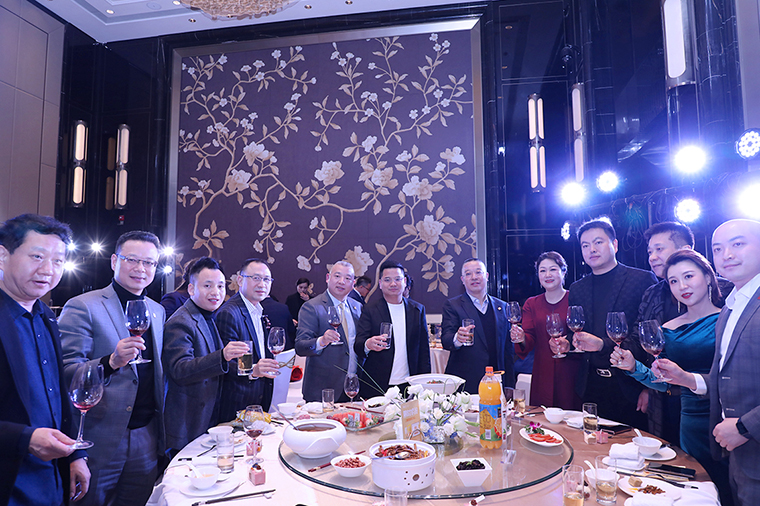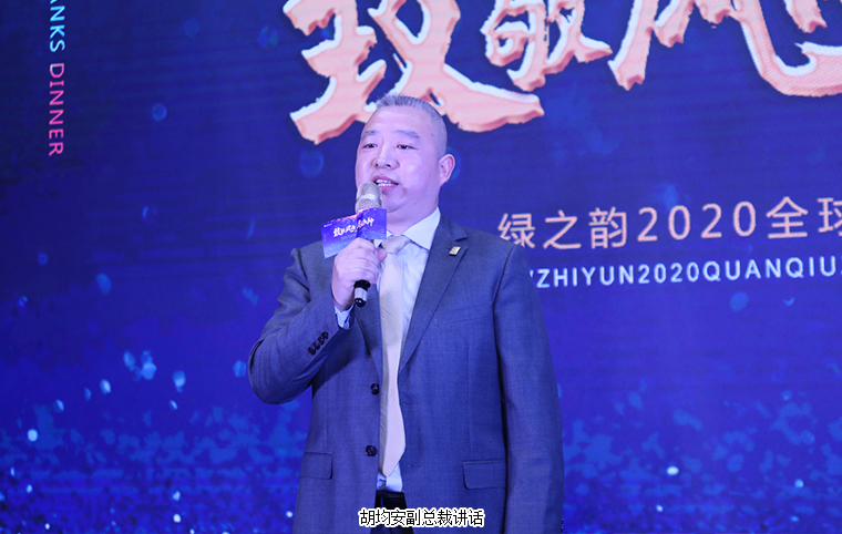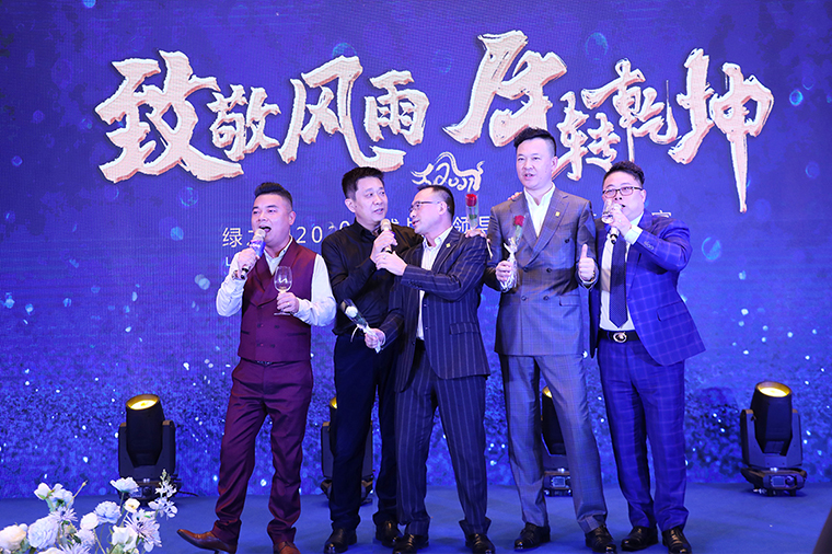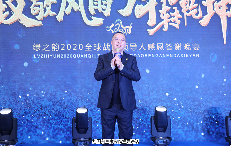 晚宴最后,胡國(guó)安董事長(zhǎng)作重要講話。他表示,感謝所有老朋友、新伙伴在嚴(yán)格疫情防控的前提下,前來參加此次特殊時(shí)期的晚宴,感謝大家一直以來對(duì)綠之韻平臺(tái)的信任、堅(jiān)守和支持。展望2021,綠之韻將繼續(xù)堅(jiān)持“三個(gè)思維”:一是底線思維。堅(jiān)守正道,做正確的事;堅(jiān)守產(chǎn)品,做規(guī)范的事;堅(jiān)守創(chuàng)新,做領(lǐng)先的事;二是抱團(tuán)思維。綠之韻是我們共有的品牌,我們應(yīng)該具備主人翁意識(shí)和抱團(tuán)取暖的思維,聚沙成塔,一起來呵護(hù)品牌、發(fā)展品牌、壯大品牌。三是命運(yùn)共同體思維。企業(yè)文化融合的使命共同體,合作共贏的利益共同體,回饋社會(huì)的責(zé)任共同體。他殷切希望,每一位綠之韻人都能成為一名旅行家,永遠(yuǎn)奔跑在夢(mèng)想的路上;成為一名慈善家,心懷感恩,致力于公益事業(yè),傳遞行業(yè)正能量。未來,讓我們一起榮辱與共、攜手前行,奔赴綠之韻第四個(gè)五年規(guī)劃的第三個(gè)年頭,實(shí)現(xiàn)共同的發(fā)展愿景!隨后,在全場(chǎng)所有嘉賓的共同見證下,胡國(guó)安董事長(zhǎng)、勞嘉總裁、胡均安副總裁共同舉杯祝酒,為所有嘉賓、事業(yè)伙伴和家人們送上誠(chéng)摯的祝福。