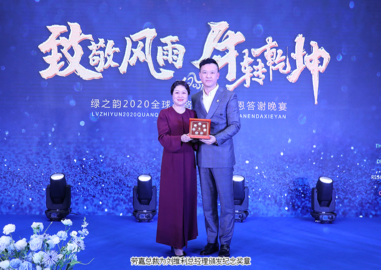 短短幾分鐘的視頻回顧,將綠之韻人過去一年胼手胝足的前行軌跡清晰地呈現(xiàn)。2020年,在這場(chǎng)席卷全球的疫情大考中,綠之韻集團(tuán)上下齊心協(xié)力,在胡國(guó)安董事長(zhǎng)、勞嘉總裁以及市場(chǎng)戰(zhàn)略領(lǐng)導(dǎo)人的帶領(lǐng)下,全體員工、全國(guó)各地綠之韻伙伴的踴躍奉獻(xiàn)愛心,用力所能及的力量支援抗擊疫情,交出了一份滿意的答卷。今天的晚宴現(xiàn)場(chǎng),綠之韻公益基金會(huì)向其中表現(xiàn)最突出的李水蓮·劉時(shí)達(dá)伉儷、李繼前、費(fèi)毓恩授予“抗疫先鋒”稱號(hào)。