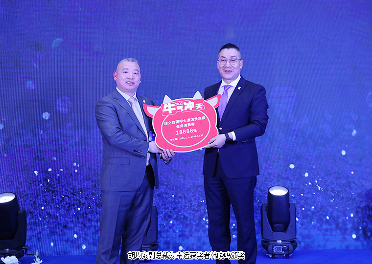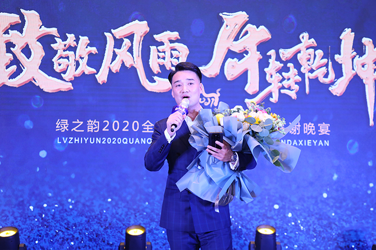 在經(jīng)過一輪精彩的互動(dòng)抽獎(jiǎng)游戲后,胡均安副總裁上臺(tái)為“幸運(yùn)大禮包”獲獎(jiǎng)?wù)唔n曉鳴頒獎(jiǎng)。他表示,很高興今天代表集團(tuán)董事會(huì)為大家送上祝福和福利。2021年,集團(tuán)在推進(jìn)原有業(yè)務(wù)板塊穩(wěn)定發(fā)展的同時(shí),也將積極布局市場(chǎng)全面發(fā)展戰(zhàn)略。集團(tuán)所有的服務(wù)團(tuán)隊(duì),產(chǎn)品、市場(chǎng)、品牌、客服等,都會(huì)在“穩(wěn)步發(fā)展、保障服務(wù)、規(guī)劃未來”的十二字方針下,為各系統(tǒng)、各市場(chǎng)板塊做好服務(wù)與支持工作,為實(shí)現(xiàn)我們的市場(chǎng)目標(biāo)全面保駕護(hù)航。新的一年,祝各位綠之韻大咖牛年大吉、市場(chǎng)紅火,共創(chuàng)綠之韻事業(yè)新的輝煌。
