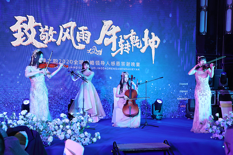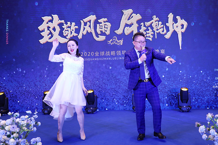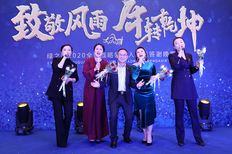 晚宴以“致敬風(fēng)雨 牛轉(zhuǎn)乾坤”為主題,綠之韻集團(tuán)總裁助理蔣文擔(dān)任主持。晚宴伊始,綠之韻集團(tuán)董事、總裁勞嘉致辭。她首先代表集團(tuán)公司對(duì)各位嘉賓、各位市場(chǎng)優(yōu)秀領(lǐng)導(dǎo)人的到來致以熱烈的歡迎和誠(chéng)摯的新春?jiǎn)柡?!在致辭中,她向大家解讀了“重啟”“蛻變”和“相信”三個(gè)“關(guān)鍵詞”。一是重啟,過去的一年因?yàn)橐咔?,我們一度按下“暫停鍵”,新的一年我們一定要按下“重啟鍵”,重啟思維、重啟戰(zhàn)略、重啟戰(zhàn)術(shù)和重啟市場(chǎng)。二是蛻變,嶄新的2021將是我們準(zhǔn)確識(shí)變、主動(dòng)求變、以變制變的一年。三是相信,2020年集團(tuán)公司度過了最為艱難的一年,但我們要相信在度過這些艱難險(xiǎn)阻之后,我們終將迎來曙光。2020年我們相聚的日子太少,希望通過今天的晚宴,各位優(yōu)秀的綠之韻全球戰(zhàn)略領(lǐng)導(dǎo)人能攜手同心、抱團(tuán)發(fā)展、追求共贏,為我們共同的夢(mèng)想去開啟我們的2021。