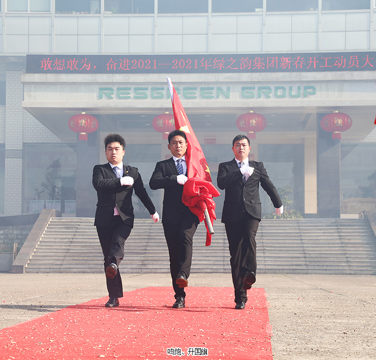 敢想敢為,奮進(jìn)2021!2月19日(正月初八),綠之韻集團(tuán)新春升旗儀式暨開(kāi)工動(dòng)員大會(huì)舉行。綠之韻集團(tuán)董事長(zhǎng)胡國(guó)安、董事總裁勞嘉、副總裁胡均安攜公司高管及全體員工參加活動(dòng)。