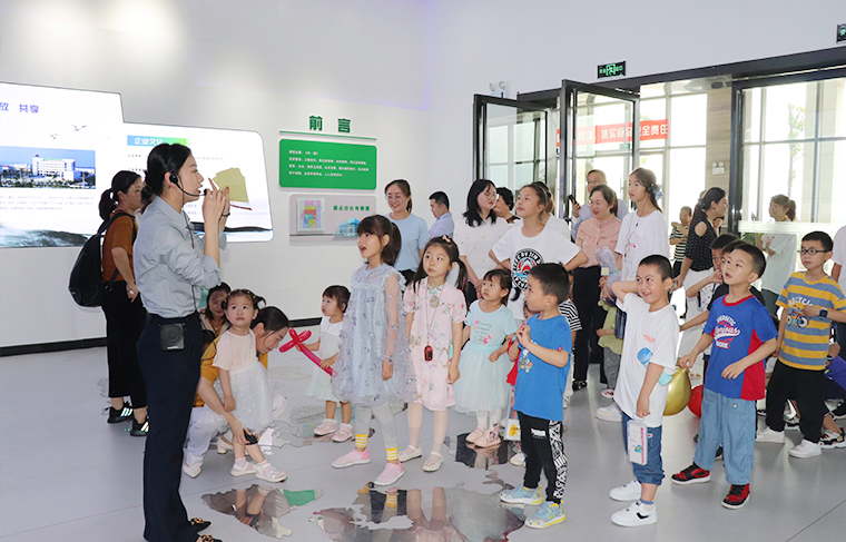 穿著米奇米妮服飾的“人偶娃娃”一出場(chǎng)就贏得了小朋友們的青睞,大家紛紛爭(zhēng)著搶著求合影,要抱抱,玩得不亦樂乎,場(chǎng)面瞬時(shí)熱鬧了起來。在父母的陪伴下,孩子們首先參觀了綠之韻國(guó)際會(huì)議中心展廳,在濃烈的企業(yè)文化氛圍中感受爸爸媽媽的工作環(huán)境。孩子們睜大著眼睛,左看看右瞧瞧,眼神里充滿了好奇,不斷向爸爸媽媽詢問了解。