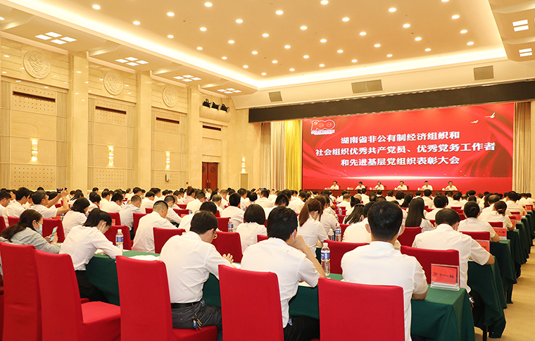 中共湖南省委組織部副部長陳瀟主持會議。大會伊始,全體起立,共唱國歌。中共湖南省委兩新工委專職副書記羅纘吉宣讀表彰文件。大會表彰一批湖南省非公有制經(jīng)濟組織和社會組織優(yōu)秀共產(chǎn)黨員、優(yōu)秀黨務(wù)工作者和先進基層黨組織。與會領(lǐng)導(dǎo)為獲獎代表頒發(fā)獎牌和榮譽證書。綠之韻集團黨委書記劉云榮獲“優(yōu)秀黨務(wù)工作者”榮譽。