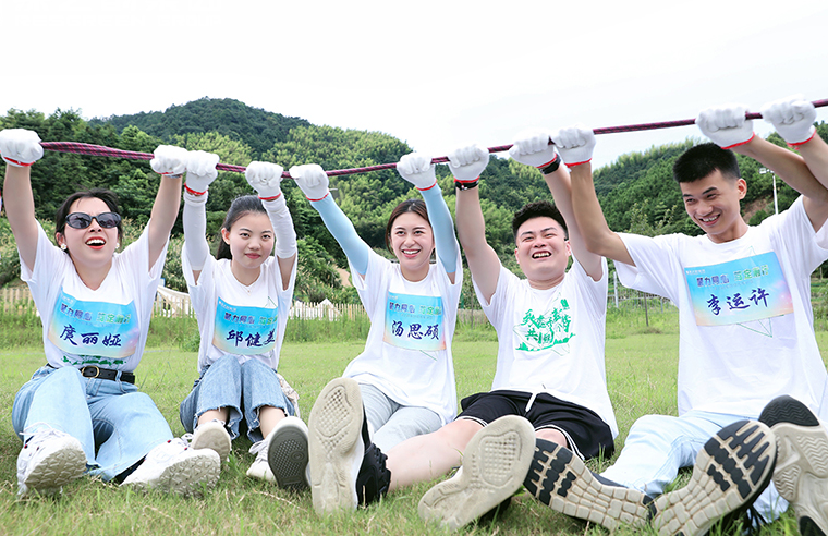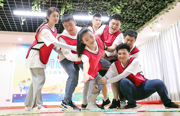 在接下來的體驗式拓展培訓(xùn)課程中,學(xué)員們共分為三組,分別為“人和隊”、“天韻隊”和“精英隊”,并選派出小組組長。三組團隊都特別準(zhǔn)備了團隊口號和隊形展示。緊接著,各位學(xué)員精神抖擻、士氣高昂、摩拳擦掌,在素質(zhì)拓展活動中積極展現(xiàn)團隊風(fēng)采,先后進行了“鼓動人心”、“流浪地球”、“極速傳真”、“動力繩圈”等多項團隊協(xié)作項目,深刻地體會到了團結(jié)協(xié)作、尊重規(guī)矩法則和挑戰(zhàn)自我極限的重要性,極大增強了團隊凝聚力和學(xué)員們對綠之韻大家庭的歸屬感和向心力。