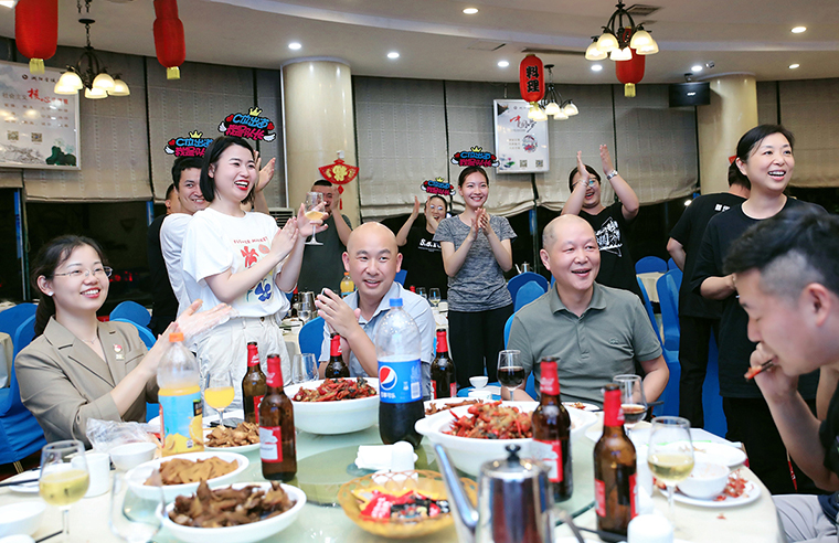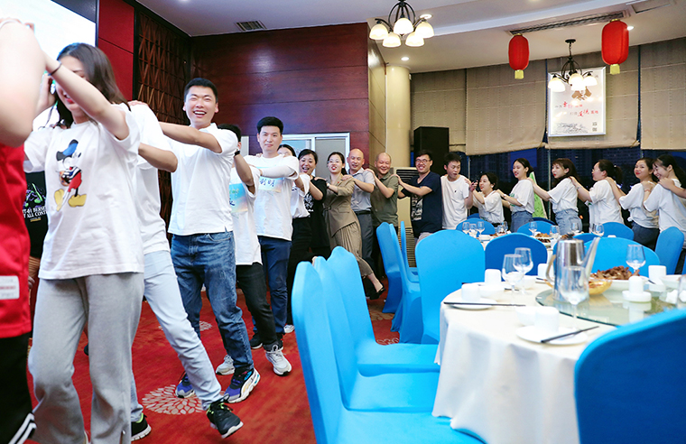晚上的分享聯(lián)歡會也是熱鬧非凡。集團公司的五年、十年員工代表作工作經(jīng)驗分享?!秳⒑?抽浴非榫皠?、《相信自己》合唱、《綠韻青年》詩朗誦……各小組精心準(zhǔn)備的團隊節(jié)目掀起了晚會一次次高潮,現(xiàn)場不斷響起熱烈的掌聲和歡呼,成為一片歡樂的海洋。