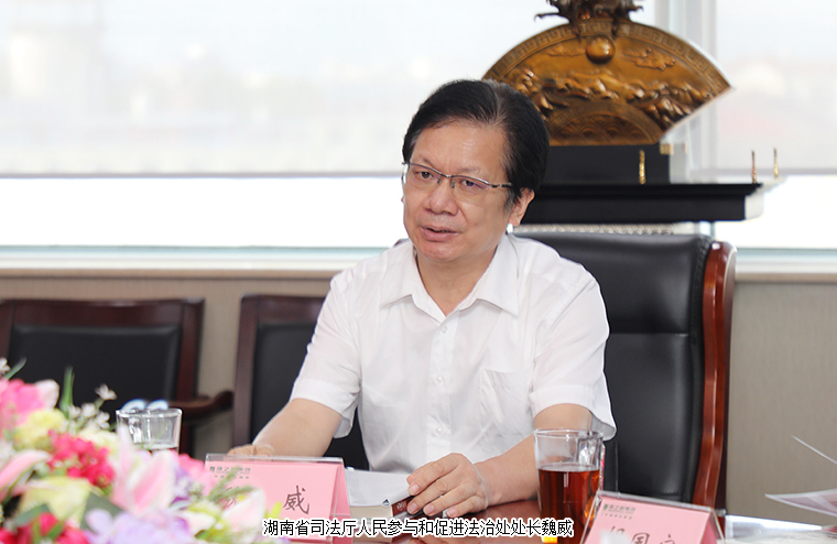 2021年9月10日,湖南省司法廳人民參與和促進法治處處長魏威、湘潭市司法局人民參與和促進法治科科長袁曉健蒞臨綠之韻集團調(diào)研指導。綠之韻集團董事長胡國安、董事總裁勞嘉、黨委書記劉云、工會主席兼辦公室行政總監(jiān)馮紅、黨委副書記許達仲、人力資源總監(jiān)皮勁全程陪同。