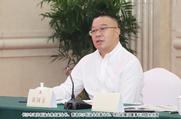 2021年9月30日,由長(zhǎng)沙市海外聯(lián)誼會(huì)、長(zhǎng)沙“僑夢(mèng)苑”主辦的長(zhǎng)沙市港澳臺(tái)僑代表人士座談會(huì)在長(zhǎng)沙召開。中共長(zhǎng)沙市委常委、統(tǒng)戰(zhàn)部長(zhǎng)何朝暉,長(zhǎng)沙市委統(tǒng)戰(zhàn)部副部長(zhǎng)、市僑辦主任饒福明,長(zhǎng)沙市委統(tǒng)戰(zhàn)部港澳臺(tái)處四級(jí)調(diào)研員李燁出席會(huì)議。長(zhǎng)沙市海外聯(lián)誼會(huì)常務(wù)副會(huì)長(zhǎng)、香港長(zhǎng)沙聯(lián)誼會(huì)名譽(yù)會(huì)長(zhǎng)、綠之韻集團(tuán)董事長(zhǎng)胡國(guó)安受邀參加會(huì)議,與全市重點(diǎn)港澳僑企代表歡聚一堂、共敘情誼、共謀發(fā)展。