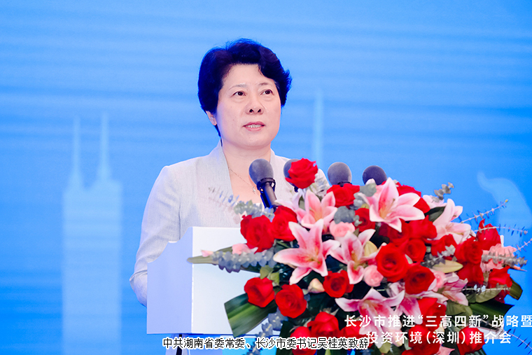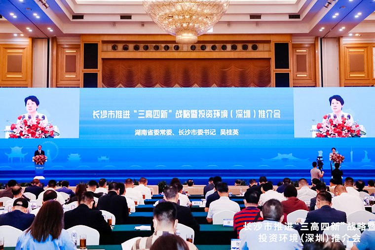 會議伊始,中共湖南省委常委、長沙市委書記吳桂英致辭。吳桂英在致辭中介紹,長沙是湖南省會、長江經(jīng)濟(jì)帶中心城市和“一帶一路”重要節(jié)點(diǎn)城市,歷史文化悠久、紅色底蘊(yùn)深厚、自然風(fēng)光秀美、交通區(qū)位便捷、發(fā)展活力迸發(fā)。去年9月,習(xí)近平總書記親臨湖南、深入長沙考察,為我們擘畫了“三高四新”的宏偉藍(lán)圖。在黨中央、國務(wù)院和省委、省政府的堅強(qiáng)領(lǐng)導(dǎo)下,長沙牢記殷殷囑托、扛起重大使命責(zé)任,堅定不移推進(jìn)“三高四新”戰(zhàn)略,全力當(dāng)好領(lǐng)頭雁、建設(shè)示范區(qū),矢志不渝沿著習(xí)近平總書記指引的方向闊步前行。吳桂英說,一年來,在“三高四新”指引下,我們奮力搶抓發(fā)展新機(jī)遇、奮力積蓄發(fā)展新動能、奮力開創(chuàng)發(fā)展新局面,著力在全球創(chuàng)特色、著力在全國爭先進(jìn)、著力在區(qū)域作示范、著力在全省當(dāng)標(biāo)桿。隨著“雙循環(huán)”格局構(gòu)建、粵港澳大灣區(qū)建設(shè)等戰(zhàn)略拓展深化,深圳與長沙的聯(lián)系更加緊密,面臨的機(jī)遇更加寶貴,合作的空間更加廣闊。誠摯希望各位商界精英、業(yè)界翹楚,以前瞻視野洞察趨勢,以共贏姿態(tài)擁抱機(jī)遇,以戰(zhàn)略眼光布局未來,帶著更多的新項目、好項目、大項目,進(jìn)駐長沙、投資長沙、建設(shè)長沙。熱忱歡迎大家多到長沙走一走、看一看,領(lǐng)略山水洲城的獨(dú)特風(fēng)貌,品味歷史名城的人文情懷,體驗(yàn)快樂長沙的精彩魅力,感知廣闊美好的發(fā)展前景。我們將竭力做好接待服務(wù)工作,促進(jìn)雙方密切交流、深化合作,共創(chuàng)更加美好的未來。
