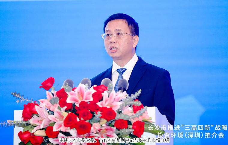 會上,中共長沙市委常委,市政府黨組副書記彭華松從宜居福地、智造基地、開放高地、創(chuàng)新勝地、投資洼地5個方面作長沙市情推介,邀請企業(yè)家到長沙觀光指導(dǎo)、考察洽談、投資興業(yè)。