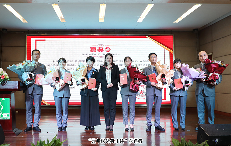 精美獎(jiǎng)?wù)拢既A沉香,每個(gè)獎(jiǎng)?wù)潞竺?,都有一位可?ài)拼搏的綠之韻人。本次大會(huì)集中頒發(fā)了“員工培訓(xùn)成果獎(jiǎng)”“五年服務(wù)英才獎(jiǎng)”“十年服務(wù)忠誠(chéng)獎(jiǎng)”等獎(jiǎng)項(xiàng)。梁淑琳、楊蔚、羅瓊蕾、余穎、彭芳、劉博、李思、李星麗榮獲“員工培訓(xùn)成果獎(jiǎng)”,綠之韻集團(tuán)執(zhí)行總經(jīng)理夏運(yùn)良為獲獎(jiǎng)員工頒發(fā)證書(shū)。今年是中國(guó)共產(chǎn)黨建黨100周年,集團(tuán)黨委積極開(kāi)展黨史學(xué)習(xí)教育,不斷夯實(shí)黨員隊(duì)伍,黨建工作也獲得了省市園區(qū)各級(jí)領(lǐng)導(dǎo)的肯定與嘉獎(jiǎng)。會(huì)議宣讀了今年以來(lái)獲得湖南省、長(zhǎng)沙市、瀏陽(yáng)經(jīng)開(kāi)區(qū)黨工委優(yōu)秀表彰的先進(jìn)集體和黨員名單:綠之韻集團(tuán)黨委榮獲“長(zhǎng)沙市標(biāo)桿引領(lǐng)先進(jìn)基層黨組織”,集團(tuán)二支部榮獲“瀏陽(yáng)經(jīng)開(kāi)區(qū)優(yōu)秀支部”,黨委書(shū)記劉云榮獲“湖南省優(yōu)秀黨務(wù)工作者”,黨員楊丹榮獲“瀏陽(yáng)經(jīng)開(kāi)區(qū)優(yōu)秀黨務(wù)工作者”,黨員梅其慧、肖波榮獲“瀏陽(yáng)經(jīng)開(kāi)區(qū)優(yōu)秀黨員”。綠之韻集團(tuán)副總裁胡均安為獲獎(jiǎng)集體及個(gè)人頒獎(jiǎng)。劉云、靳威、周芳、張艷琴、沈立晟、李克戰(zhàn)、劉偉榮膺“五年服務(wù)英才獎(jiǎng)”,陳建輝榮膺“十年服務(wù)忠誠(chéng)獎(jiǎng)”,綠之韻集團(tuán)董事總裁勞嘉為獲獎(jiǎng)員工頒發(fā)獎(jiǎng)?wù)屡c榮譽(yù)證書(shū),并致以熱烈祝賀?!拔迥攴?wù)英才獎(jiǎng)”代表周芳和“十年服務(wù)忠誠(chéng)獎(jiǎng)”代表陳建輝分別發(fā)表獲獎(jiǎng)感言。