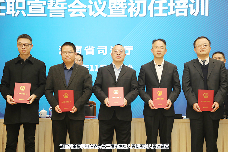 2021年11月18日,第二屆湖南省人民檢察院人民監(jiān)督員任職宣誓暨初任培訓(xùn)會議在長沙召開。湖南省司法廳黨組書記、廳長范運(yùn)田,省人民檢察院副檢察長印仕柏出席會議并講話,省司法廳黨組成員、政治部主任雷豐超宣讀任命決定,省司法廳黨組成員、副廳長胡國雄主持會議。第二屆省人民檢察院人民監(jiān)督員,各市州人民檢察院案件管理辦公室負(fù)責(zé)人,各市州人民監(jiān)督員選任管理辦公室負(fù)責(zé)人,省人民檢察院案件管理辦公室全體人員,省人民監(jiān)督員選任管理辦公室全體人員參加會議。湖南省政協(xié)委員、省工商聯(lián)(總商會)副會長、綠之韻集團(tuán)董事長胡國安參加會議。