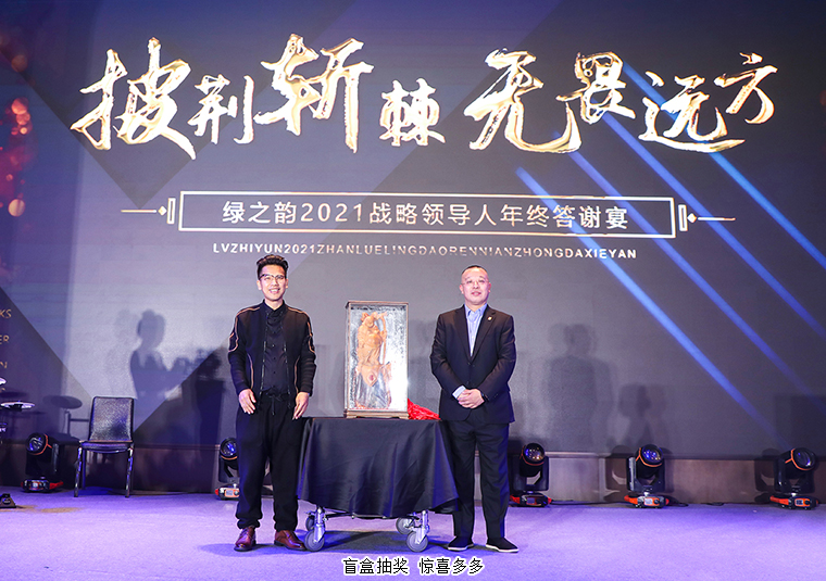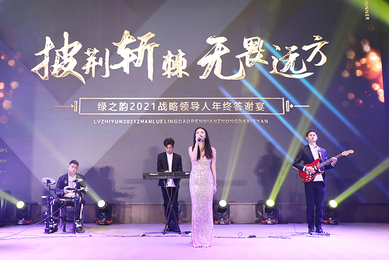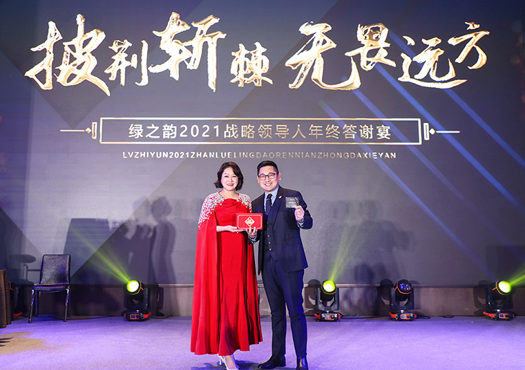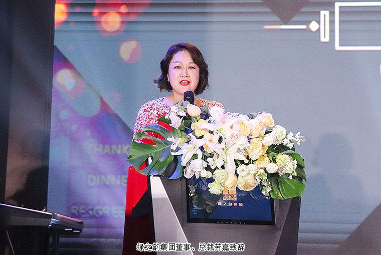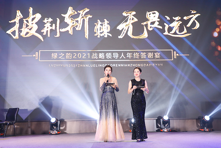 晚宴以“披荊斬棘·無畏遠方”為主題。晚宴伊始,綠之韻集團董事、總裁勞嘉致辭。她首先代表集團公司對各位嘉賓、各位市場優(yōu)秀領導人的到來致以熱烈的歡迎和誠摯的問候!衷心感謝每一位新老朋友的努力和堅持,讓綠之韻這個品牌,在這個特殊的年份,不僅克服了重重困難,而且還取得了良性增長。即將邁入嶄新的2022,這將是我們鑒機識變、化危為贏、擼起袖子、彎道超車的一年。她堅信:任何困難、任何險阻、任何風雨并不可怕,只要綠之韻人在一起,就會更有力量;只要我們披荊斬棘,無畏遠方,心手相牽,明天就一定會更美好!
