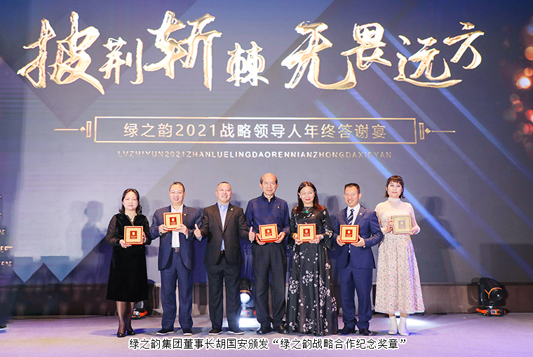 2021年12月22日,“披荊斬棘·無畏遠方”綠之韻集團2021戰(zhàn)略領導人答謝晚宴在長沙成功舉行。綠之韻集團董事長胡國安,綠之韻集團企業(yè)戰(zhàn)略發(fā)展顧問、中國保健協(xié)會直銷工作委員會執(zhí)行主任胡遠江,經濟學博士王亭喜,綠之韻集團董事總裁勞嘉,副總裁胡均安攜公司高管團隊、全球戰(zhàn)略領導人及相關部門第一負責人共同見證這一重要時刻。