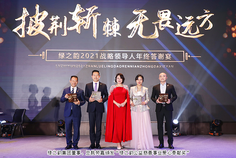 這一年,綠之韻繼續(xù)踐行著“關愛生命 造福人類”的理念,開展了一系列幫扶弱勢群體、愛心助學、鄉(xiāng)村振興公益品牌活動:橘子洲千人公益跑、馳援河南災后重建、支援安化鄉(xiāng)村振興、致公·綠之韻(3)班開班……一場又一場的公益行動點亮了綠之韻的公益版圖,愛已經成為綠之韻人生命的習慣。晚宴現場,綠之韻集團董事、總裁,綠之韻公益基金會理事長勞嘉向過去一年中積極投身公益慈善事業(yè)的市場優(yōu)秀代表綠之韻碧波庭、綠之韻低碳、綠之韻天泰、綠之韻匯誠頒發(fā)“綠之韻公益慈善事業(yè)愛心奉獻獎”。