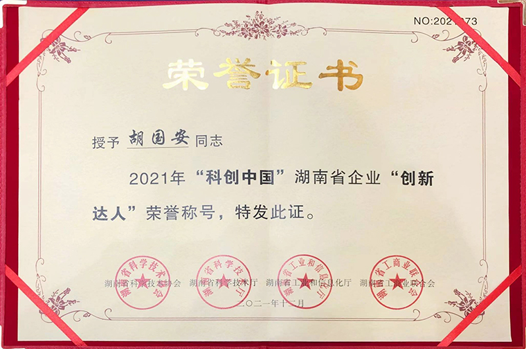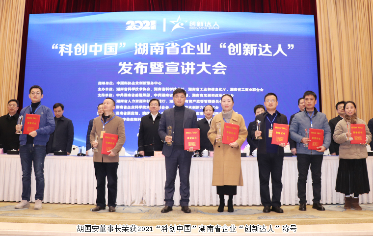隨后,中國工程院院士柴立元宣讀表彰決定。據(jù)了解,此次評(píng)選活動(dòng)由中國科協(xié)部署安排,湖南省科學(xué)技術(shù)協(xié)會(huì)、湖南省科學(xué)技術(shù)廳、湖南省工業(yè)和信息化廳、湖南省工商業(yè)聯(lián)合會(huì)聯(lián)合開展、共同評(píng)選,經(jīng)各方推薦和專家評(píng)審產(chǎn)生了100名“科創(chuàng)中國”湖南省企業(yè)“創(chuàng)新達(dá)人”。綠之韻集團(tuán)董事長胡國安憑借著在科技創(chuàng)新方面的突出貢獻(xiàn),榮獲2021“科創(chuàng)中國”湖南省企業(yè)“創(chuàng)新達(dá)人”稱號(hào)。