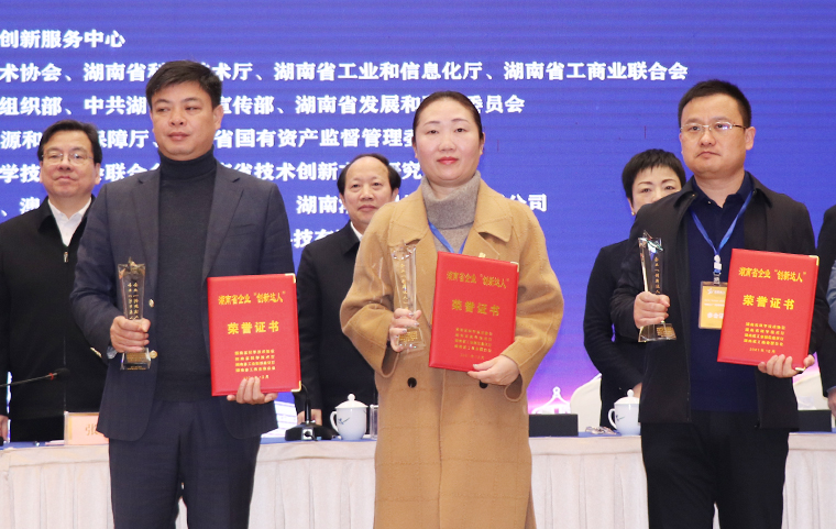 大會(huì)由湖南省科協(xié)黨組成員、副主席陳松主持。中國科協(xié)企業(yè)創(chuàng)新服務(wù)中心主任蘇小軍視頻致辭。他對(duì)活動(dòng)的順利舉辦表示熱烈的祝賀,對(duì)榮獲本年度“科創(chuàng)中國”湖南省企業(yè)“創(chuàng)新達(dá)人”稱號(hào)的企業(yè)家、科學(xué)家、技能工匠致以崇高的敬意。湖南省科協(xié)黨組書記、常務(wù)副主席王瑰曙表示,要學(xué)習(xí)貫徹好習(xí)總書記系列講話精神,堅(jiān)持創(chuàng)新的核心地位,抓創(chuàng)新就是抓發(fā)展,抓創(chuàng)新就是抓未來;要堅(jiān)持四個(gè)服務(wù)的職責(zé)定位,加大對(duì)企業(yè)科學(xué)組織的建設(shè);要共同爭當(dāng)科技發(fā)展的表率,勇攀科技高峰。