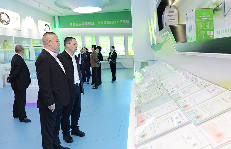 調(diào)研組一行首先參觀了綠之韻集團國際會議中心展廳。胡國安董事長就企業(yè)基本情況、生產(chǎn)經(jīng)營、市場布局、產(chǎn)品研發(fā)和公益慈善等方面的工作情況向調(diào)研組一行做了詳細介紹。多年來,綠之韻積極響應(yīng)湖南省委省政府、長沙市委市政府、瀏陽市委市政府、瀏陽經(jīng)開區(qū)號召,不斷加大科研投入,不斷深化“產(chǎn)學研”合作,先后與南京大學、湖南農(nóng)業(yè)大學、湖南省中醫(yī)藥大學、湖南中醫(yī)藥研究院等科研機構(gòu)、高等院校達成戰(zhàn)略合作,成立了產(chǎn)品專家委員會,提升產(chǎn)品核心競爭力。2021年7月,綠之韻集團與新化縣農(nóng)業(yè)農(nóng)村局就新化黃精及其他道地中藥材相關(guān)產(chǎn)業(yè)規(guī)劃升級和精深加工簽訂了涵蓋基地建設(shè)、精深產(chǎn)品研發(fā)和市場營銷的戰(zhàn)略合作協(xié)議。 未來,綠之韻將繼續(xù)以產(chǎn)學研結(jié)合為模式,以中藥材種植為引領(lǐng),在新化縣和安化縣建設(shè)黃精中藥材種植基地,配套完善黃精原地加工、制造、銷售等環(huán)節(jié)。