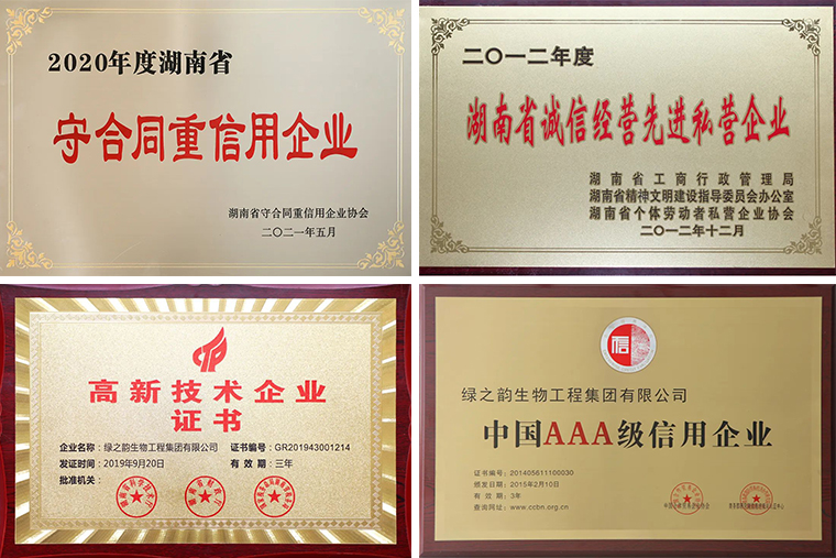 “和誠立信,競超興業(yè)”是綠之韻集團(tuán)秉承的經(jīng)營宗旨和行動準(zhǔn)則。十九年來,綠之韻集團(tuán)在胡國安董事長的引領(lǐng)下,堅持以規(guī)范為根本、以責(zé)任為使命、以品質(zhì)為生命,立足健康可持續(xù)發(fā)展,維護(hù)消費(fèi)者合法權(quán)益,傳遞行業(yè)正能量,不僅在企業(yè)品牌、戰(zhàn)略、管理、文化等方面實現(xiàn)了大幅度提升,而且還不遺余力地為行業(yè)培養(yǎng)了許多行業(yè)精英人才,為民族品牌的良性發(fā)展與崛起貢獻(xiàn)了自己的力量。綠之韻連續(xù)十多年被授予“湖南省守合同重信用單位”,連續(xù)多年被授予納稅信用A級榮譽(yù),先后獲評“國家高新技術(shù)企業(yè)”“中國企業(yè)誠信經(jīng)營示范單位”“中國AAA級信用企業(yè)”“湖南省誠信經(jīng)營先進(jìn)私營企業(yè)”“湖南省著名商標(biāo)”“湖南名牌”等多項殊榮。胡國安董事長個人先后被授予“全國優(yōu)秀中國特色社會主義事業(yè)建設(shè)者、全國先進(jìn)愛國企業(yè)家、全國優(yōu)秀民營企業(yè)家、共青團(tuán)中央“第四屆中國青年創(chuàng)業(yè)獎”、共青團(tuán)中央“希望工程25周年杰出貢獻(xiàn)獎”、中華慈善總會“中華慈善突出貢獻(xiàn)獎”、湖南省“五一”勞動獎?wù)隆⒑鲜 鞍倜蠲婪鲐毴宋铩?、CCTV感動中國(湖南)十佳人物、湖南省人民政府頒發(fā)的一等功、長沙市人民政府頒發(fā)的二等功等國家、省市各級各類榮譽(yù)200多項。
