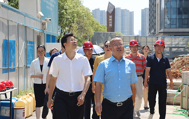2022年7月26日,長沙市政協(xié)副主席、致公黨湖南省委會副主委、長沙市委會主委、長沙公共資源交易中心主任黃鋒,長沙市雨花區(qū)人民政府副區(qū)長、致公黨長沙市委會副主委易靜,致公黨長沙市委會常委、秘書長歐陽明,致公黨長沙市委會原秘書長、“致多星”企業(yè)家服務(wù)平臺總召集人彭曉輝,致公黨長沙市委會四級主任科員湯卓一行蒞臨綠之韻中心走訪調(diào)研。湖南省政協(xié)委員、中國致公黨黨員、致公黨湖南省委會“數(shù)字互聯(lián)”委員會名譽主任、湖南省慈善總會副會長、綠之韻集團董事長胡國安,湖南致公麓商會副會長胡武安,湖南鼎晨泰投資有限公司總經(jīng)理林小娟,湖南綠之韻房地產(chǎn)開發(fā)有限公司總經(jīng)理周君四,副總經(jīng)理嚴明輝、勞毅,中建五局三公司綠之韻中心項目經(jīng)理余送來、生產(chǎn)經(jīng)理張子維,湖南拓天監(jiān)理有限公司綠之韻中心項目總監(jiān)劉澤紅等全程陪同。