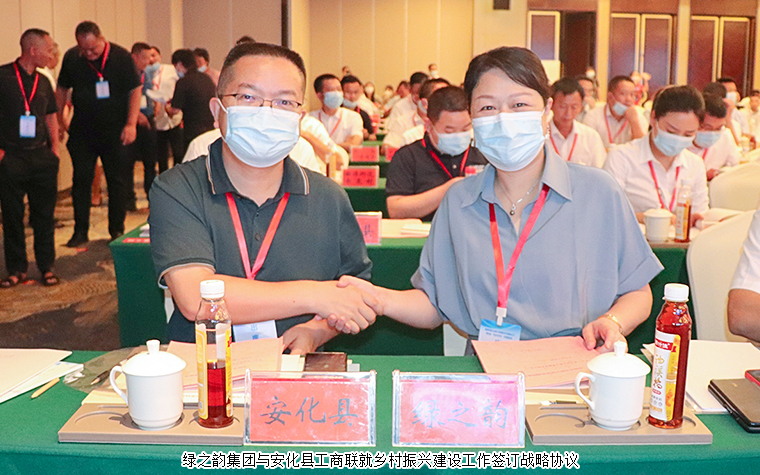為充分發(fā)揮民營企業(yè)作用,參與實施鄉(xiāng)村振興戰(zhàn)略,助力縣域經(jīng)濟高質(zhì)量發(fā)展,2022年7月27日,湖南民營企業(yè)助力縣域經(jīng)濟發(fā)展新化行暨全省“萬企興萬村”行動推進會在婁底新化舉行。中共湖南省委常委、省委統(tǒng)戰(zhàn)部部長隋忠誠在會上宣布湖南民營企業(yè)助力縣域經(jīng)濟發(fā)展行動啟動,湖南省政協(xié)副主席、省工商聯(lián)主席張健主持會議,中共湖南省委統(tǒng)戰(zhàn)部副部長、省工商聯(lián)黨組書記劉事青對全省工商聯(lián)系統(tǒng)推進“萬企興萬村”行動進行部署并講話。湖南省工商聯(lián)(總商會)常委、綠之韻集團董事總裁勞嘉受邀參加活動,并參與重大項目集中簽約。