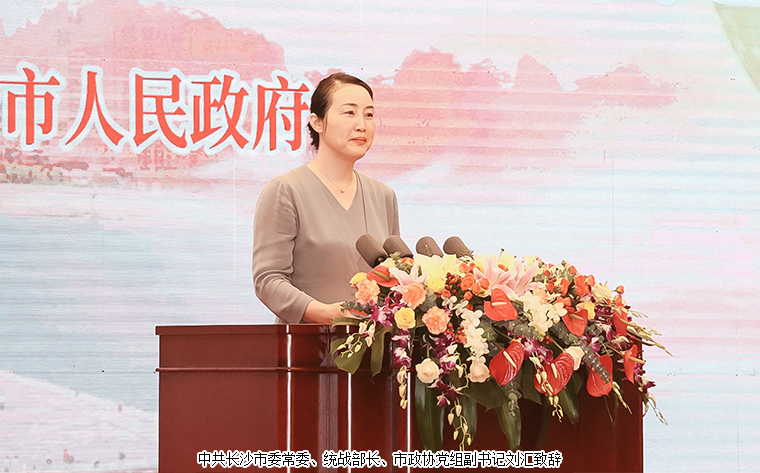 中共長沙市委常委、統(tǒng)戰(zhàn)部長、市政協(xié)黨組副書記劉匯致辭。她表示,今年是中國共產(chǎn)黨明確提出統(tǒng)一戰(zhàn)線政策100周年,百年來統(tǒng)一戰(zhàn)線為黨領(lǐng)導(dǎo)中國革命、建設(shè)、改革事業(yè)取得勝利的重要把關(guān),展現(xiàn)了顯著優(yōu)越性和強(qiáng)大生命力,為中華民族偉大復(fù)興的歷史偉業(yè)匯聚了磅礴力量。前不久,中共中央召開了統(tǒng)戰(zhàn)工作會議,習(xí)近平總書記深刻闡述了新時代統(tǒng)戰(zhàn)工作的指導(dǎo)思想、基本任務(wù)、工作重點、政策舉措,對做好新時代黨的統(tǒng)一戰(zhàn)線工作提出了12個必須的重要指示要求,這是新時代我們推進(jìn)統(tǒng)一戰(zhàn)線工作的根本遵循和行動指南。統(tǒng)一戰(zhàn)線必須認(rèn)真學(xué)習(xí),深刻領(lǐng)會,自覺踐行,堅決落實。在中共長沙市委的堅強(qiáng)領(lǐng)導(dǎo)下,繼續(xù)凝心聚力、團(tuán)結(jié)奮斗、守正創(chuàng)新、勇毅前行,為加快落實“三高四新”戰(zhàn)略定位和使命任務(wù),奮力實施“強(qiáng)省會”戰(zhàn)略,全面建設(shè)現(xiàn)代化新長沙做出新的更大貢獻(xiàn)。