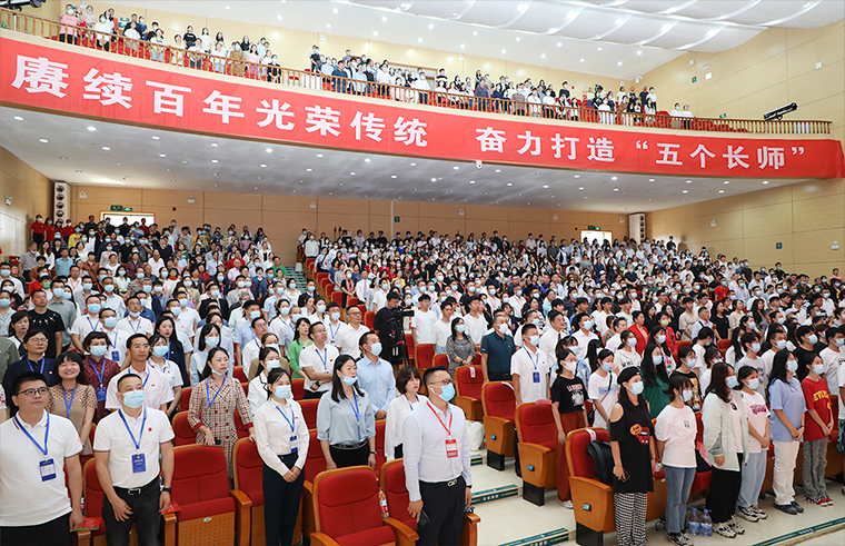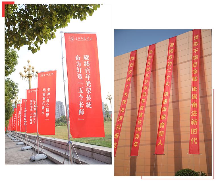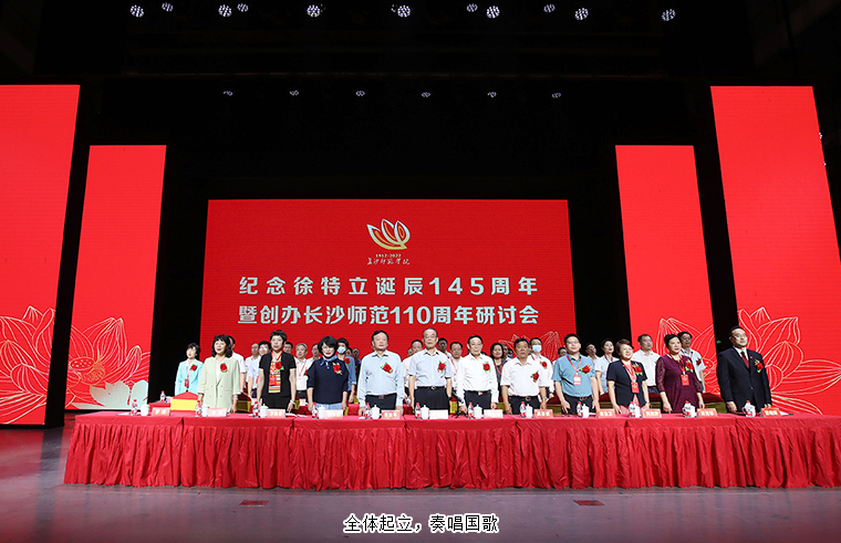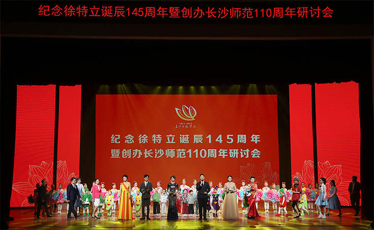 秋日的長沙師范校園里,到處洋溢著節(jié)日的氣氛。長沙師范學(xué)院校旗、各學(xué)院院旗和各地校友會會旗迎風(fēng)飄揚(yáng)。2022年9月25日,紀(jì)念徐特立誕辰145周年暨創(chuàng)辦長沙師范學(xué)院110周年研討會在田漢實(shí)驗(yàn)劇院隆重舉行。一校兩區(qū)師生員工、海內(nèi)外校友和關(guān)心長沙師范學(xué)院發(fā)展的各界人士匯聚一堂,共襄盛事,共同見證長沙師范學(xué)院百年榮光。