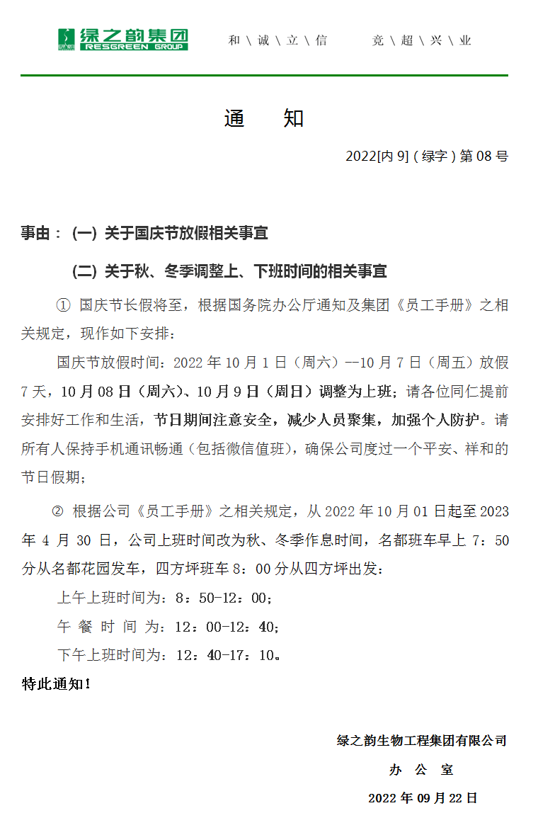 通 知 丨關(guān)于“中秋國慶”節(jié)放假安排和秋冬季作息時(shí)間調(diào)整的相關(guān)事宜