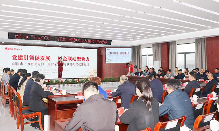 中共瀏陽市委常委、組織部部長唐安石講話。他向長期以來關(guān)心支持瀏陽鄉(xiāng)村振興的廣大企業(yè)家和社會(huì)各界人士表示衷心的感謝。他提出,一是要強(qiáng)化黨建引領(lǐng)。鄉(xiāng)鎮(zhèn)要當(dāng)好全面推進(jìn)鄉(xiāng)村振興的一線作戰(zhàn)部,做到黨委強(qiáng)、機(jī)制順、隊(duì)伍活。村支書要發(fā)揮領(lǐng)頭雁作用,帶領(lǐng)村兩委班子苦干實(shí)干,攻堅(jiān)克難。駐村第一書記和工作隊(duì)要切實(shí)履職盡責(zé),廣大農(nóng)村黨員要發(fā)揮先鋒模范作用,帶領(lǐng)群眾奮發(fā)圖強(qiáng)。民營企業(yè)黨組織要積極承擔(dān)社會(huì)責(zé)任,助力鄉(xiāng)村振興共同富裕,把黨的組織優(yōu)勢轉(zhuǎn)化為推動(dòng)鄉(xiāng)村全面振興的強(qiáng)大動(dòng)能。二是要抓好產(chǎn)業(yè)發(fā)展。萬企興萬村要取得實(shí)效,關(guān)鍵在產(chǎn)業(yè)。按照“一村一品”的思路幫扶,培育壯大特色優(yōu)勢產(chǎn)業(yè),打造精品產(chǎn)業(yè)。三是要做實(shí)企業(yè)服務(wù),支持民營企業(yè)民營經(jīng)濟(jì)發(fā)展壯大,始終把民營企業(yè)和民營企業(yè)家當(dāng)作自己人,為企業(yè)提供“誠心、用心、專心、精心、傾心”為代表的“五心”級(jí)服務(wù),全力優(yōu)化營商環(huán)境,助推民營企業(yè)高質(zhì)量發(fā)展。