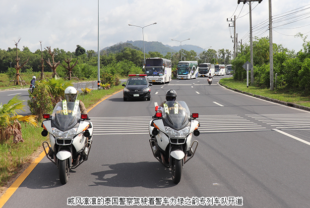 威風凜凜的泰國警察駕駛著警車為綠之韻專列車隊開道,一路護送。綠之韻家人前往的皇權(quán)免稅中心(KING POWER)是泰國最大的免稅商場,里面有各種世界名牌手表、化妝品、手袋、衣服,包括泰國最優(yōu)質(zhì)的的手工藝品、食品、手信……綠之韻家人在這里買到手軟,逛到盡興。