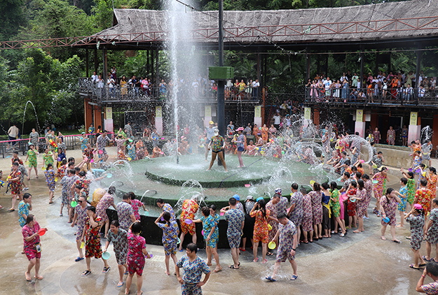 佛吉水舞是泰國最大的潑水狂歡主題活動旅游景區(qū),綠之韻九臺豪華旅游大巴載著300名綠之韻營銷精英浩浩蕩蕩包場佛吉水舞當天的潑水節(jié)主題活動。綠之韻家人在這里體驗宋干文化,參加潑水狂歡,拜佛、浴佛、祈福、觀賞泰國的傳統(tǒng)舞蹈,感受泰國潑水節(jié)帶來的開心和快樂。