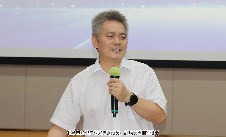活動(dòng)最后,長(zhǎng)沙市知識(shí)產(chǎn)權(quán)局黨組成員、副局長(zhǎng)徐擁軍講話(huà)。他對(duì)本次活動(dòng)的成功舉辦表示祝賀并充分肯定了綠之韻集團(tuán)在深化商標(biāo)品牌建設(shè)及黨建工作方面取得的顯著成效。針對(duì)商標(biāo)品牌建設(shè)及知識(shí)產(chǎn)權(quán)保護(hù)他提出三點(diǎn)建議:一是企業(yè)要聚焦商標(biāo)品牌建設(shè)。商標(biāo)是企業(yè)的一個(gè)重要資產(chǎn),也是企業(yè)品牌承載的重要載體,更是企業(yè)的一張名片,要有好的產(chǎn)品贏得市場(chǎng),也要有好的商標(biāo)才能夠帶來(lái)長(zhǎng)久的效益;二是要深刻認(rèn)識(shí)商標(biāo)品牌建設(shè)對(duì)于產(chǎn)業(yè)發(fā)展的重要作用。專(zhuān)利是以先進(jìn)技術(shù)先進(jìn)設(shè)計(jì)來(lái)形成新的產(chǎn)品,商標(biāo)就是以它的一個(gè)獨(dú)特標(biāo)識(shí)來(lái)形成特色的品牌,其共同作用就是贏得市場(chǎng),給產(chǎn)業(yè)一個(gè)持續(xù)發(fā)展的空間及保障。把商標(biāo)品牌建設(shè)好了,不僅是企業(yè)自身的事情,實(shí)際上是給區(qū)域經(jīng)濟(jì)發(fā)展帶來(lái)了一份支撐;三是要營(yíng)造商標(biāo)品牌建設(shè)的良好環(huán)境。要建立好對(duì)接機(jī)制、開(kāi)展專(zhuān)項(xiàng)指導(dǎo)服務(wù)、加強(qiáng)人才隊(duì)伍建設(shè),同時(shí)在自主權(quán)領(lǐng)域里面把多種知識(shí)產(chǎn)權(quán)布局,來(lái)保護(hù)商標(biāo)的建設(shè)工作,為促進(jìn)長(zhǎng)沙企業(yè)科技創(chuàng)新成果轉(zhuǎn)化、推動(dòng)產(chǎn)業(yè)轉(zhuǎn)型升級(jí)和企業(yè)健康持續(xù)發(fā)展提供有力支撐。