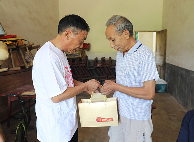 來到位于洞陽鎮(zhèn)東園村的老兵家中,劉云書記一行與老兵們親切交談,詳細了解他們的生活、身體狀況,聆聽他們回憶入伍時的崢嶸歲月,向他們致以節(jié)日的祝福和崇高的敬意,對他們?yōu)閲医?jīng)濟、社會發(fā)展和地方建設作出的巨大貢獻表示誠摯感謝。綠之韻集團工會主席兼集團辦公室行政總監(jiān)馮紅、黨委副書記許達仲向老兵們送上慰問金、營養(yǎng)品和日用品。
