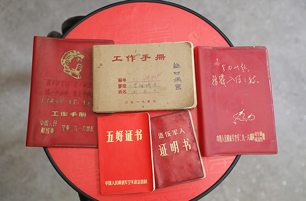看到我們的到來,老人很是自豪地從柜子里翻出自己曾經(jīng)在部隊里獲得“五好戰(zhàn)士”和“實彈射擊優(yōu)秀成績”的榮譽證書和獎狀。50余載的歲月走過,已經(jīng)泛黃的獎狀被老人很用心的封存在相框中;紅底黃字的“五好戰(zhàn)士”榮譽證,薄薄的一張小紙片,邊角已經(jīng)磨損,幾道深深的折痕,留下了歲月的痕跡,但那精神在老人娓娓道來的敘述聲中依然鮮活。