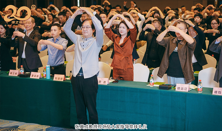 中國(guó)保健協(xié)會(huì)直銷(xiāo)工作委員會(huì)執(zhí)行主任胡遠(yuǎn)江教授在晚宴現(xiàn)場(chǎng)講話。他表示非常榮幸今天能相聚在郴州,在這里感受到全面的養(yǎng)生文化,領(lǐng)略到東江的美食,感受生命的激情飛揚(yáng)。飲水思源方能繼往開(kāi)來(lái),心系蒼生必然傳承流遠(yuǎn),中華民族自古以來(lái)都有緬懷先輩的傳統(tǒng),祭祀活動(dòng)作為綠之韻集團(tuán)二十周年盛典的重要系列活動(dòng)之一,能感受到公司對(duì)人文先祖無(wú)限的敬仰,同時(shí)也彰顯了在這20年發(fā)展歷程中,集團(tuán)公司文化力量和成長(zhǎng)力量的凝聚。他相信未來(lái)的20年,綠之韻集團(tuán)也一定會(huì)越飛越高,越飛越精彩。