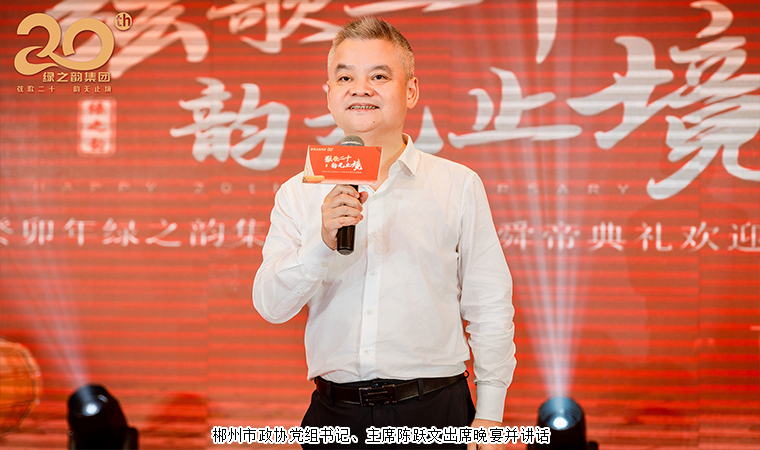 山水畫(huà)卷郴州相見(jiàn),郴州遇見(jiàn)一生眷戀。晚宴尾聲,郴州市政協(xié)黨組書(shū)記、主席陳躍文講話。他表示非常高興今天能和綠之韻的精英們相聚在郴州,他介紹,郴州有非常優(yōu)越的區(qū)位優(yōu)勢(shì);郴州有著非常豐富的礦產(chǎn)資源;郴州有非常好的旅游景點(diǎn),郴州東江湖,人間天上一湖水,萬(wàn)千景象在其中。他歡迎在場(chǎng)所有企業(yè)家到郴州觀光旅游,投資興業(yè)。今年綠之韻迎來(lái)了二十周年,他堅(jiān)信有在座所有人的努力,綠之韻一定能夠從一個(gè)勝利走向另一個(gè)勝利,從一個(gè)輝煌走向另一個(gè)輝煌,他期待和大家一起見(jiàn)證綠之韻的30年、40年、50年、100年。