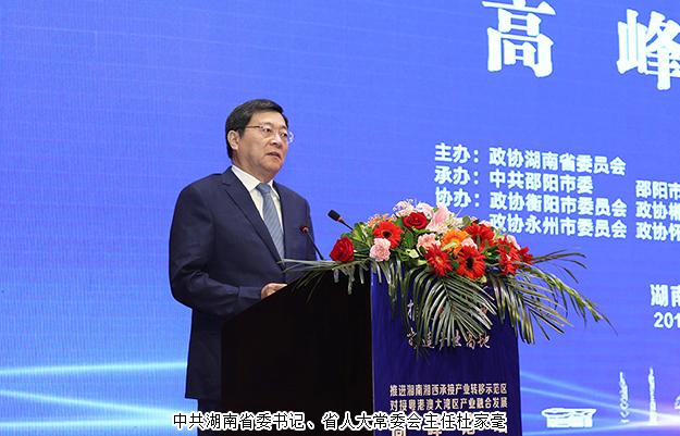 2019年7月30日,由政協(xié)湖南省委員會主辦的“推進湘南湘西承接產(chǎn)業(yè)轉(zhuǎn)移示范區(qū),對接粵港澳大灣區(qū)產(chǎn)業(yè)融合發(fā)展”高峰論壇暨重點項目推介會在湖南邵陽舉行。全國政協(xié)副主席梁振英,中共湖南省委書記、省人大常委會主任杜家毫,中共湖南省委副書記、省人民政府省長許達哲, 中共湖南省委常委、省委秘書長張劍飛,湖南省人民政府副省長何報翔,湖南省政協(xié)副主席胡旭晟等領(lǐng)導(dǎo)出席論壇。湖南省政協(xié)委員、綠韻控股董事局主席胡國安與正威國際、沃爾瑪、深圳華大基因、新希望、香港銅鑼灣集團等企業(yè)代表以及來自全國的專家學(xué)者、粵港澳大灣區(qū)客商代表參加論壇,共話湖南發(fā)展。
